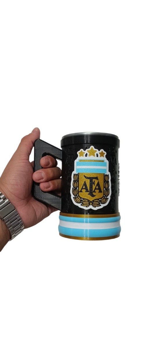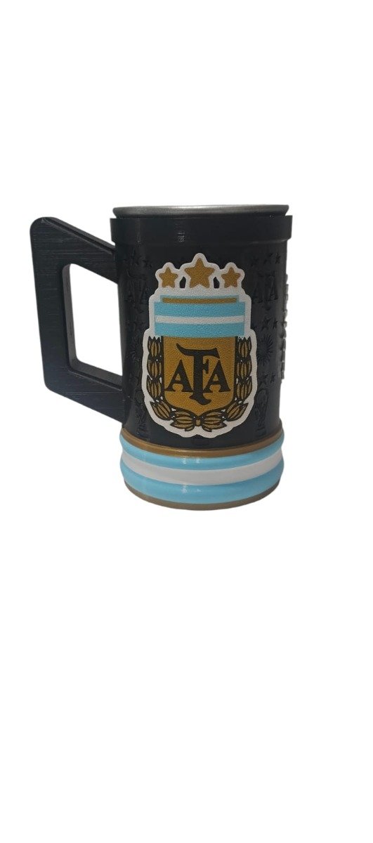 Fabricado con materiales resistentes y un acabado premium, este chopp de cerveza Argentina cuenta con un diseño en relieve del escudo AFA y los clásicos colores celeste y blanco, perfecto para destacar en cualquier juntada.